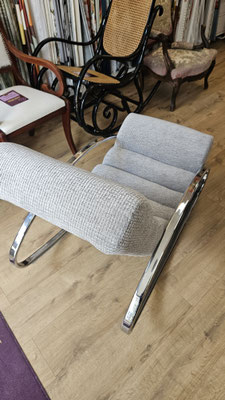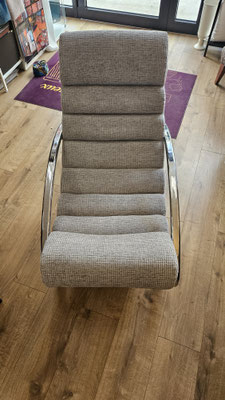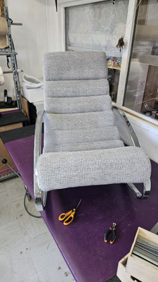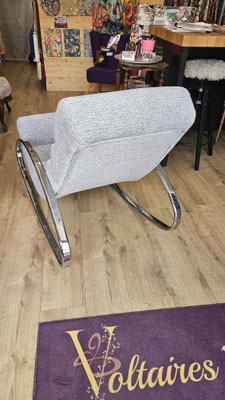 Le mobilier moderne exige des solutions textiles à la hauteur de ses lignes épurées. Pour la restauration de ce fauteuil aux courbes contemporaines, nous avons sélectionné le tissu ORSAY de chez Camengo. 🕊️