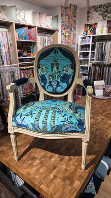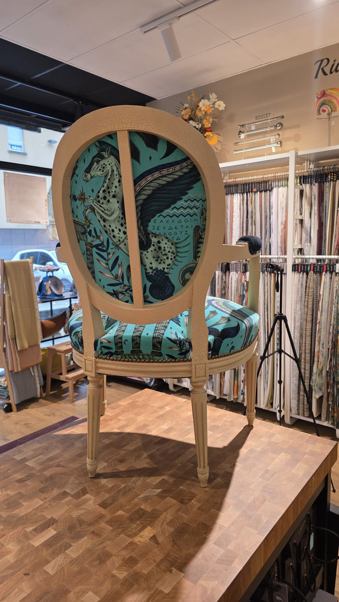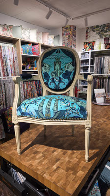 Un vent d’exotisme souffle sur l’atelier ! Pour cette restauration, nous avons osé le contraste entre la structure classique d'un fauteuil cabriolet et l'univers onirique d'Emma J Shipley. 🌿🌀