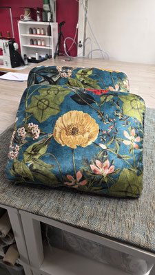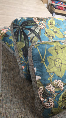 🔸 Tissus / Éditeurs : - Assise : Sidney (Vert) – @jab_anstoetz - Dossiers : Tissu Floral – @clarke_clarke_interiors