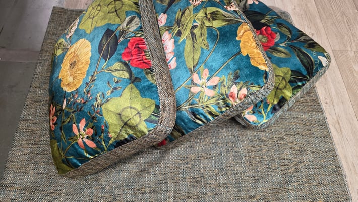 Le mariage des textures est ici à l'honneur : une assise robuste et élégante avec le tissu Sidney de chez JAB, dont le vert profond répond parfaitement au foisonnement floral des dossiers. Pour ces derniers, le tissu de la maison Clarke & Clarke apporte une touche artistique et colorée, créant un contraste aussi visuel que tactile. 🎨